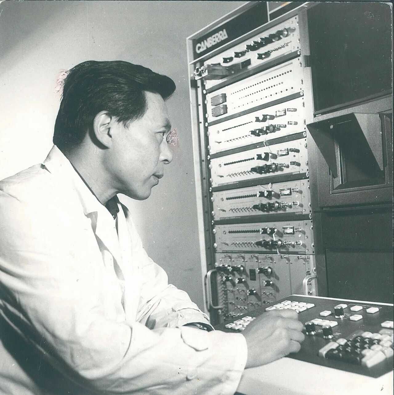 1964年,欧阳自远用伽马能谱仪测定大气层样品的放射性物质沉降。