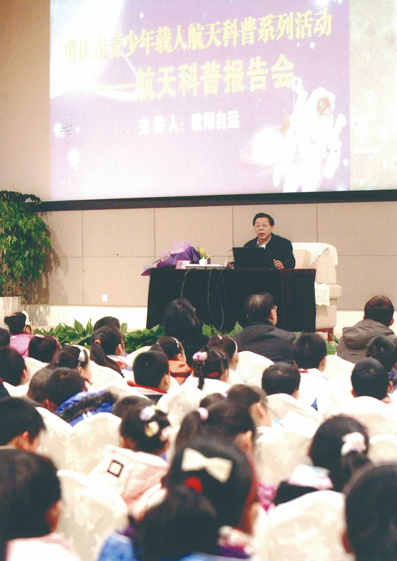2010年,欧阳自远在重庆科技馆作科普报告。