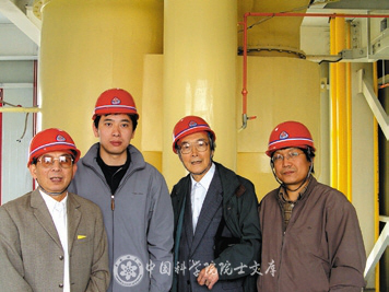 2004年,郭慕孙(右2)在呼和浩特煤系高岭土中间实验车间